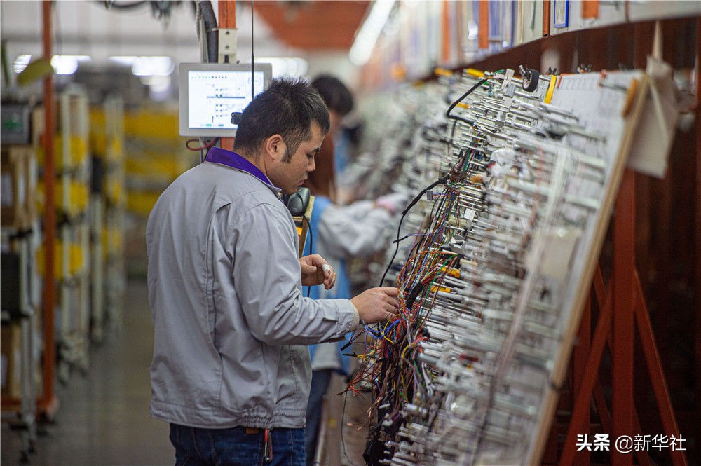 在嘉兴平湖市一家汽车零部件生产企业,工人在生产线上工作(2020年12月16日摄)。新华社发(江汉 摄)