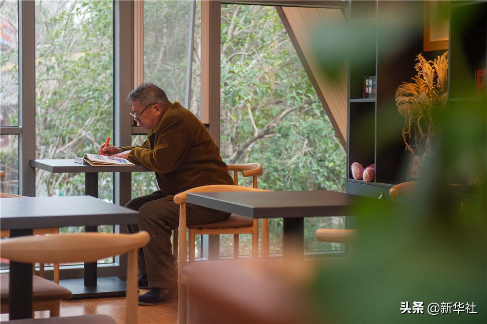 1月5日,在嘉兴市南湖区洪兴路一处城市驿站内,一名老人在阅读书籍。新华社发(江汉 摄)