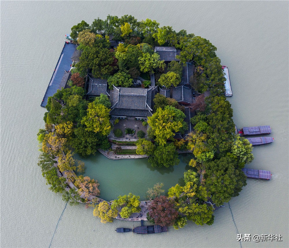 空中俯瞰嘉兴南湖湖心岛(无人机照片,2020年10月27日摄)。新华社记者 徐昱 摄