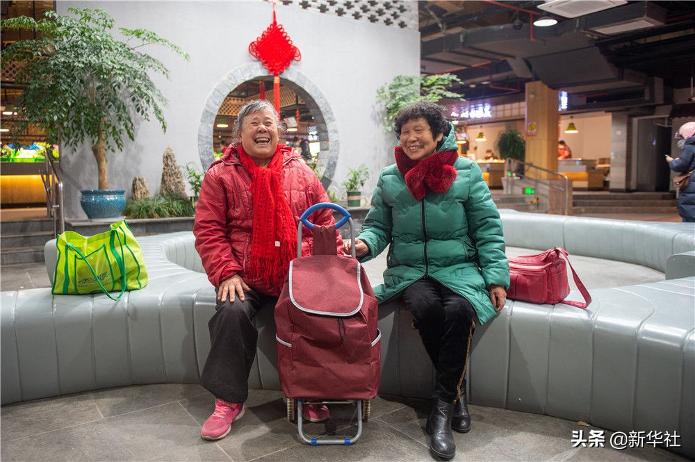 1月5日,在改造完毕的嘉兴市南湖区杨柳湾幸福里菜市场,两名老人在休息区休息。新华社发(江汉 摄)