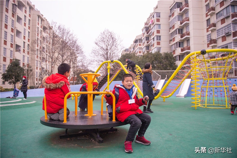 1月5日,在嘉兴市南湖区桂苑社区,孩子们在老旧小区改造后建立的儿童游乐广场上玩耍。新华社发(江汉 摄)