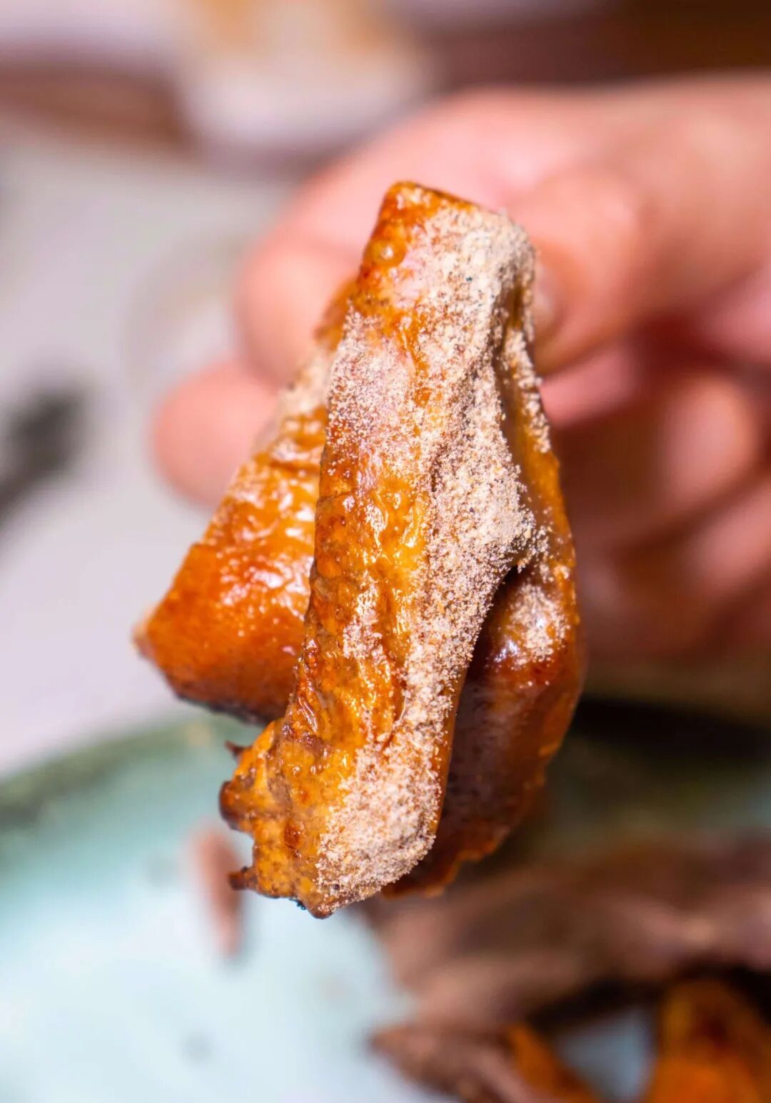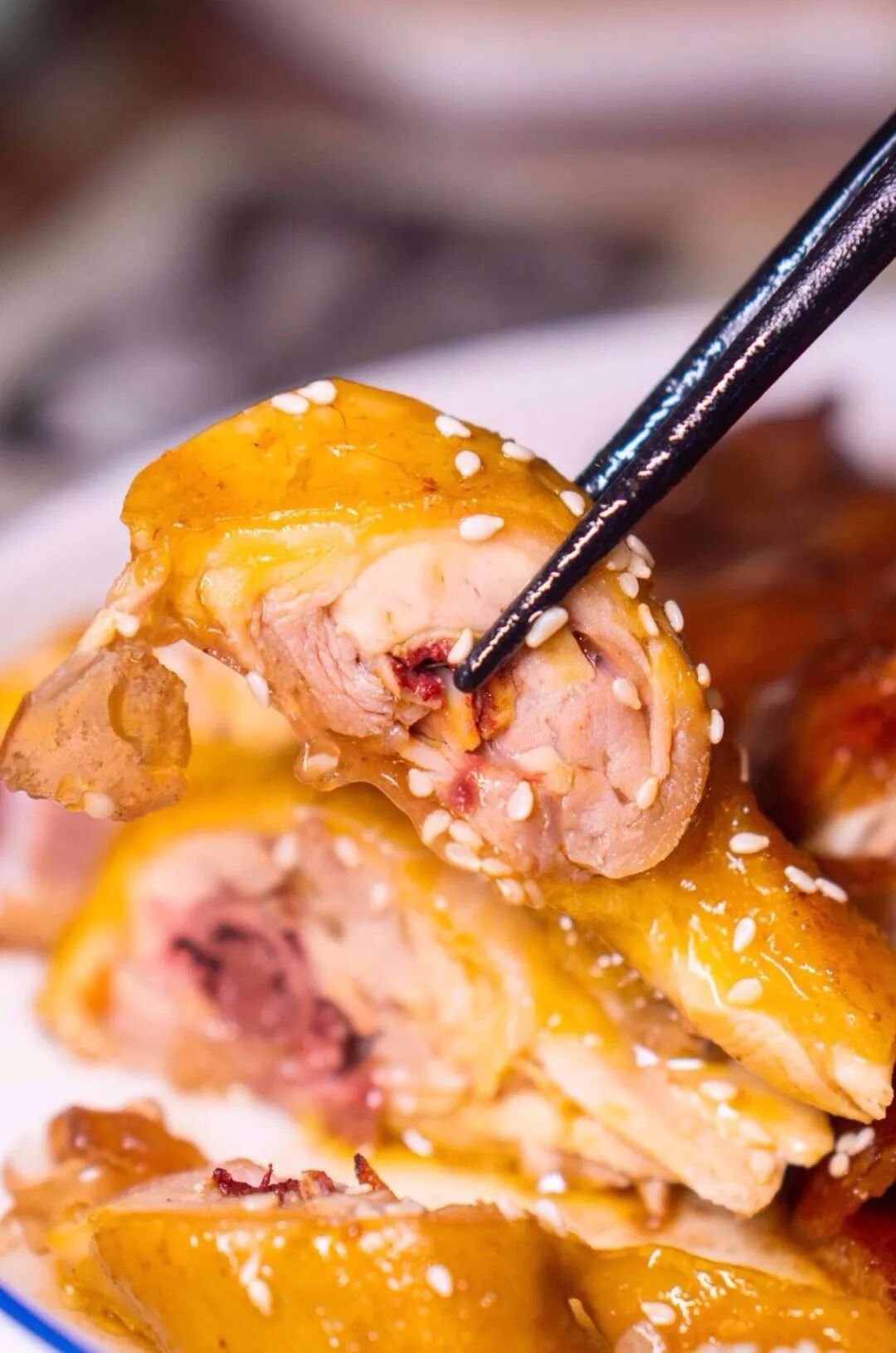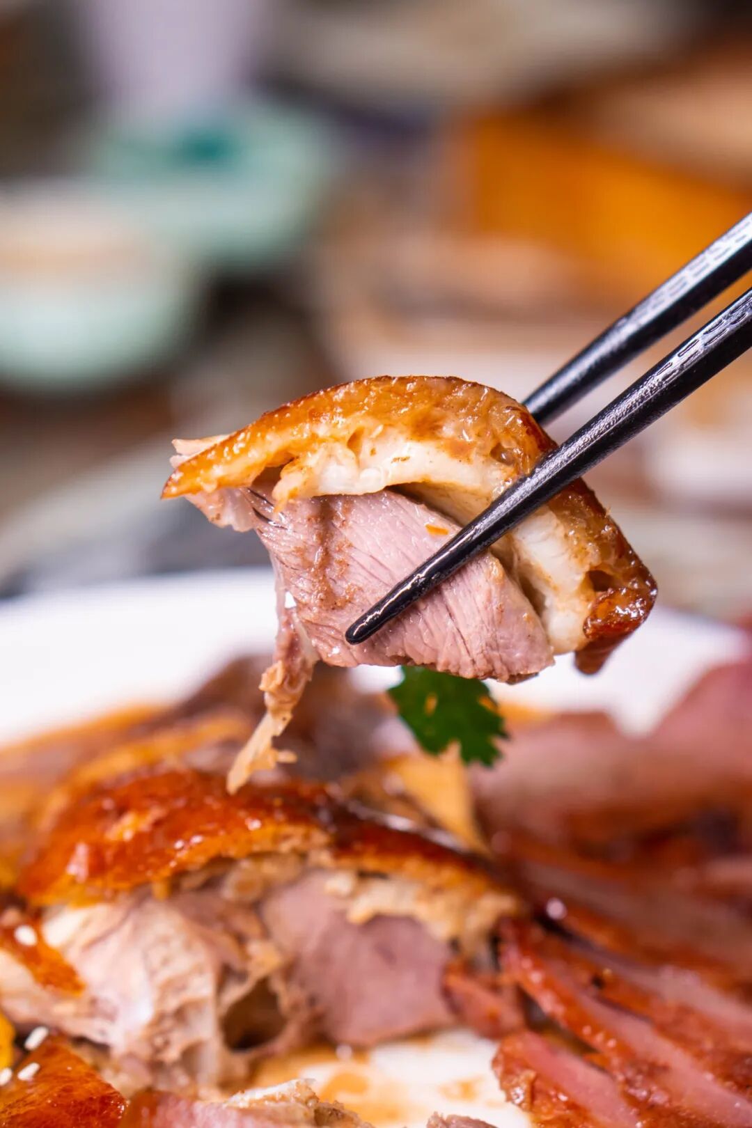 这么可爱的乳鸽当然要立马上手啦 轻轻一撕就能感受到它有多酥脆 而上面的 酥皮 则可以算是招牌乳鸽的精华