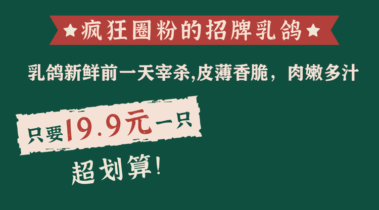 而且 现在只要19.9元 / 只,还要什么自行车 这么美味又便宜的招牌乳鸽,我先冲了 !