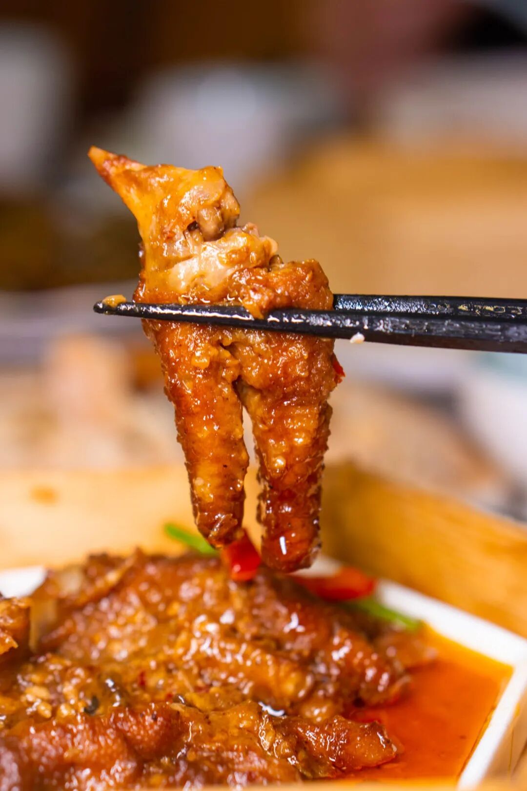 刚出炉的凤爪不仅自带热气 香味还直往鼻子里钻,馋的人直咽口水 除了主角凤爪,就连汤汁也不容小觑 用来拌饭堪称一绝!!!