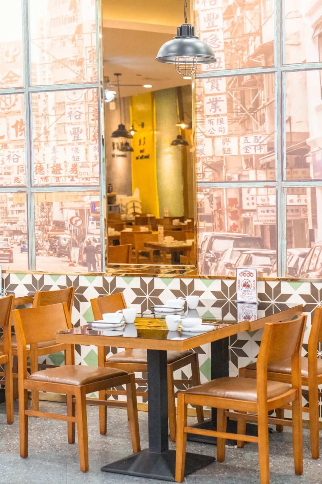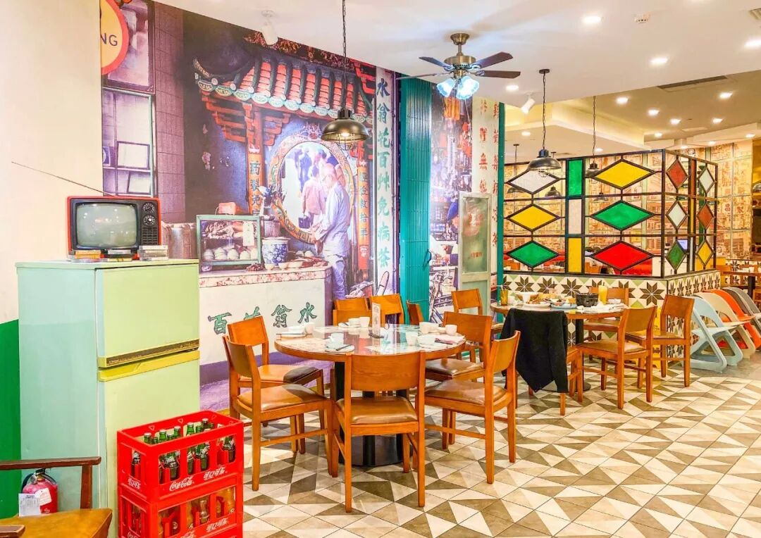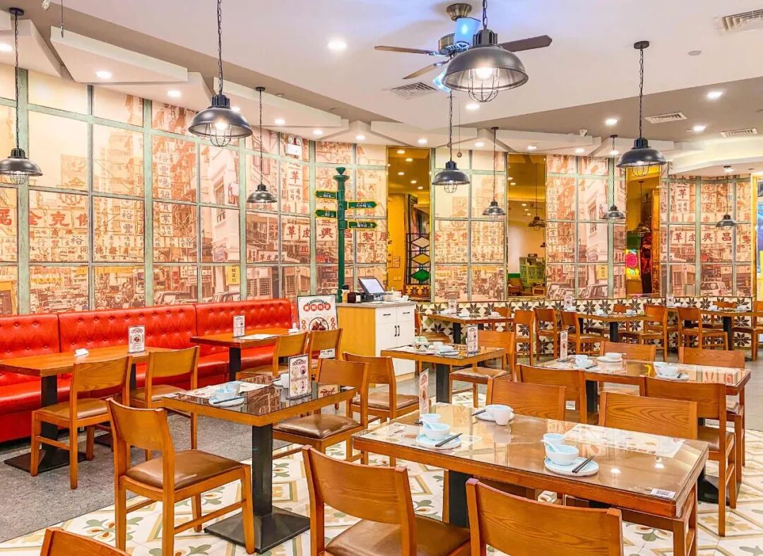 怀旧的桌椅 + 显眼的灯牌 + 复古家电 店里的每个细节都透露着浓浓的港式风情