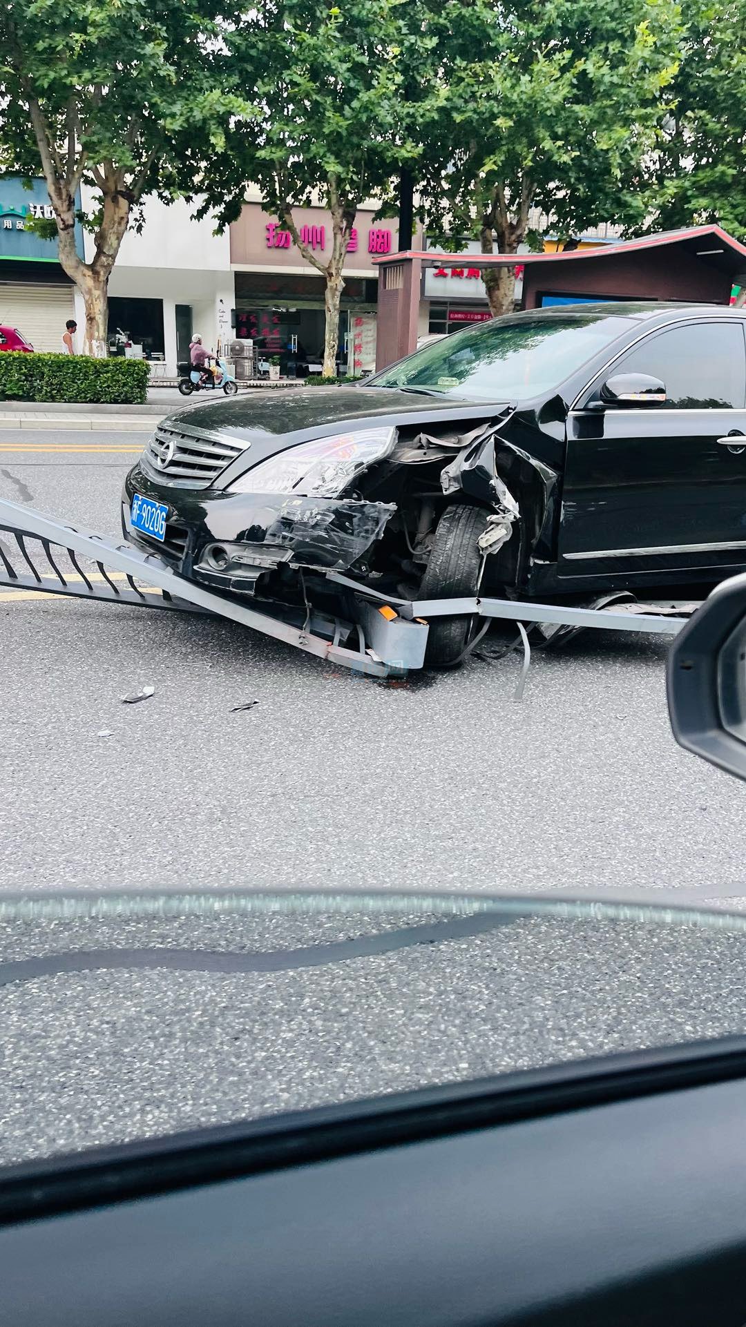 [我要爆料] 一大早东升西路黑色轿车撞上中间隔离护栏 |